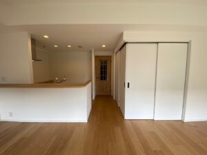 もともと写真左側が和室で、ふすまのようなデザインの引き戸で仕切れるようになっていました。